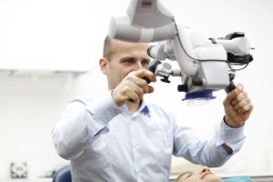 Um sich Zugang zu den äußerst feinen Kanalstrukturen zu verschaffen ist das Verwenden eines Operationsmikroskopes unerläßlich.
